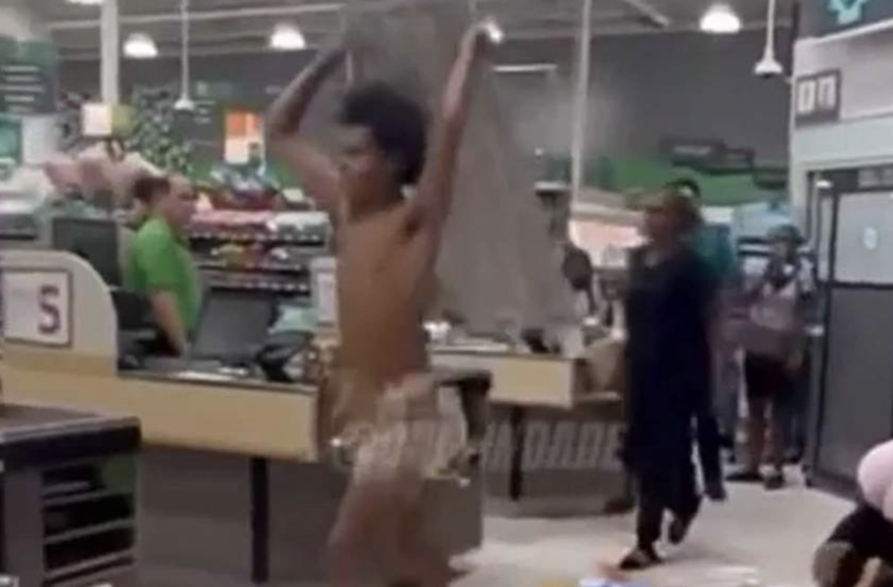 It was pure pandemonium inside a Miami Publix on Thursday when a shirtless man ripped a metal shelf from its base and began swinging it at terrified shoppers.
